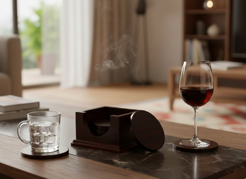 Juego de 6 porta vasos con caja - Madera de Ébano